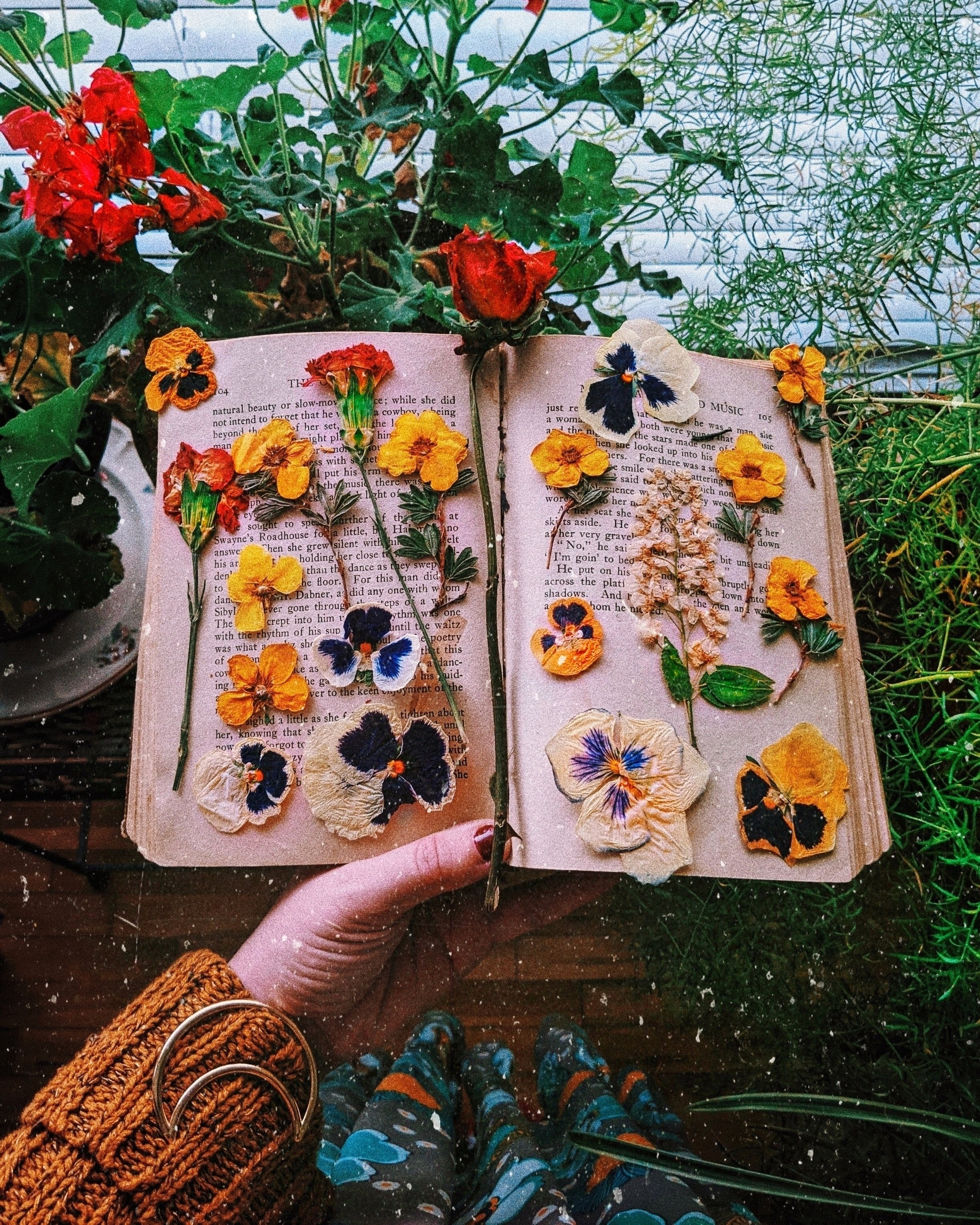 - put a flower in between a book to press it ๐ธ